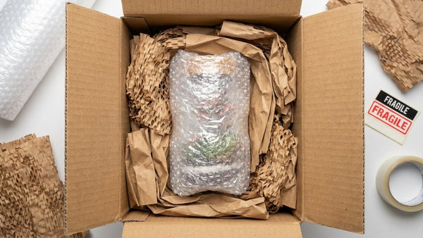 We use bubble wrap for insulation and hard paper as filler